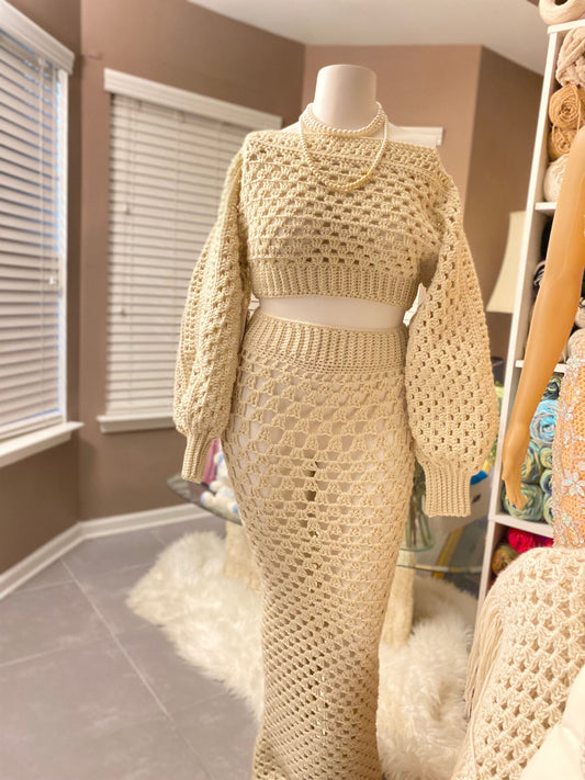 Ivory Camille Open Work Cropped Sweater Set