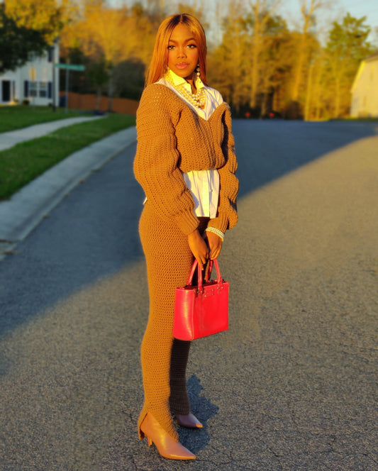 Mocha Mckayla Crop Sweater and Split Pants set