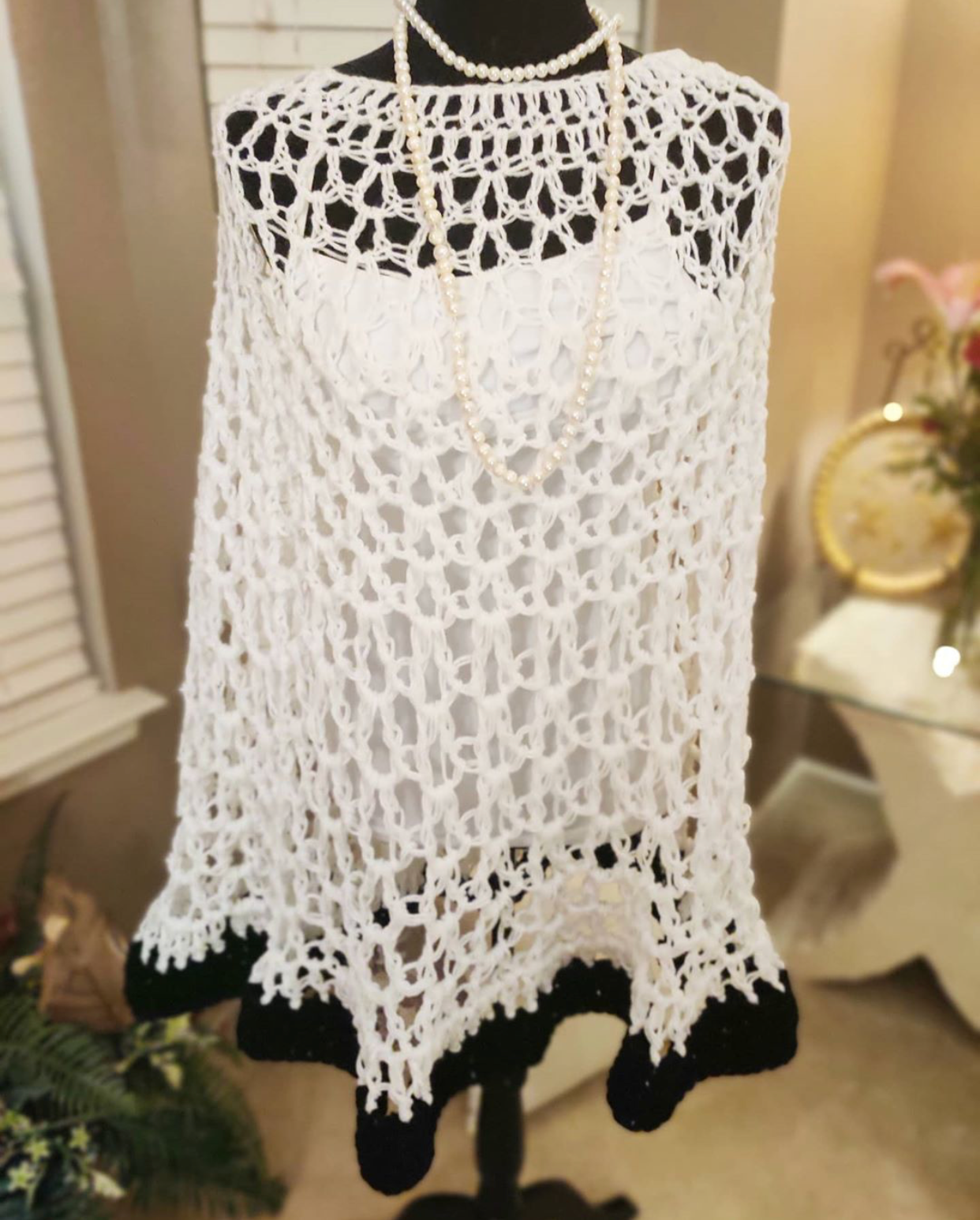 An absolutely stunning poncho that will have eyes on you. Elegance is the word that you will own when you wear this magnificent creation.
